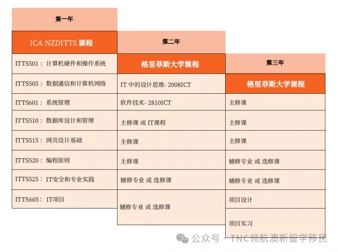 奥克兰国际学校(ICA)与澳大利亚格里菲斯大学有着合作关系。成功完成ICA新西兰信息技术技术支持(NZDITTS 5级)课程并在ICA学习一年后,学生将获得来自ICA的80学分的学分转换。学生可以继续在澳大利亚格里菲斯大学(黄金海岸和内森校区)攻读信息技术学士学位,完成剩余的160学分。