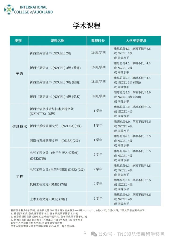 (备注:关于ICA开设的土木工程7级文凭课程是否享受上述绿色清单课程待遇,请与TNC领航持牌移民顾问确认与联系)