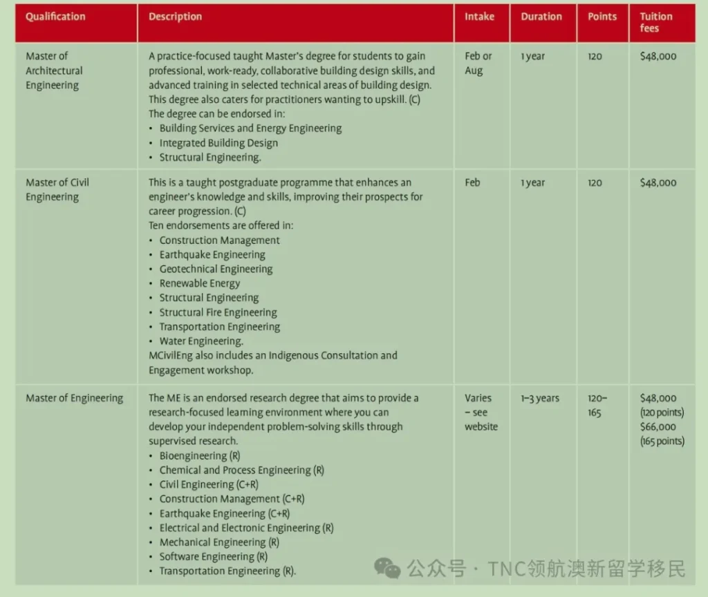 - 入学要求:新西兰工程荣誉学士学位或相关学科荣誉理学学士学位的学生,或成绩良好的土木工程研究生证书,雅思6.5(6)