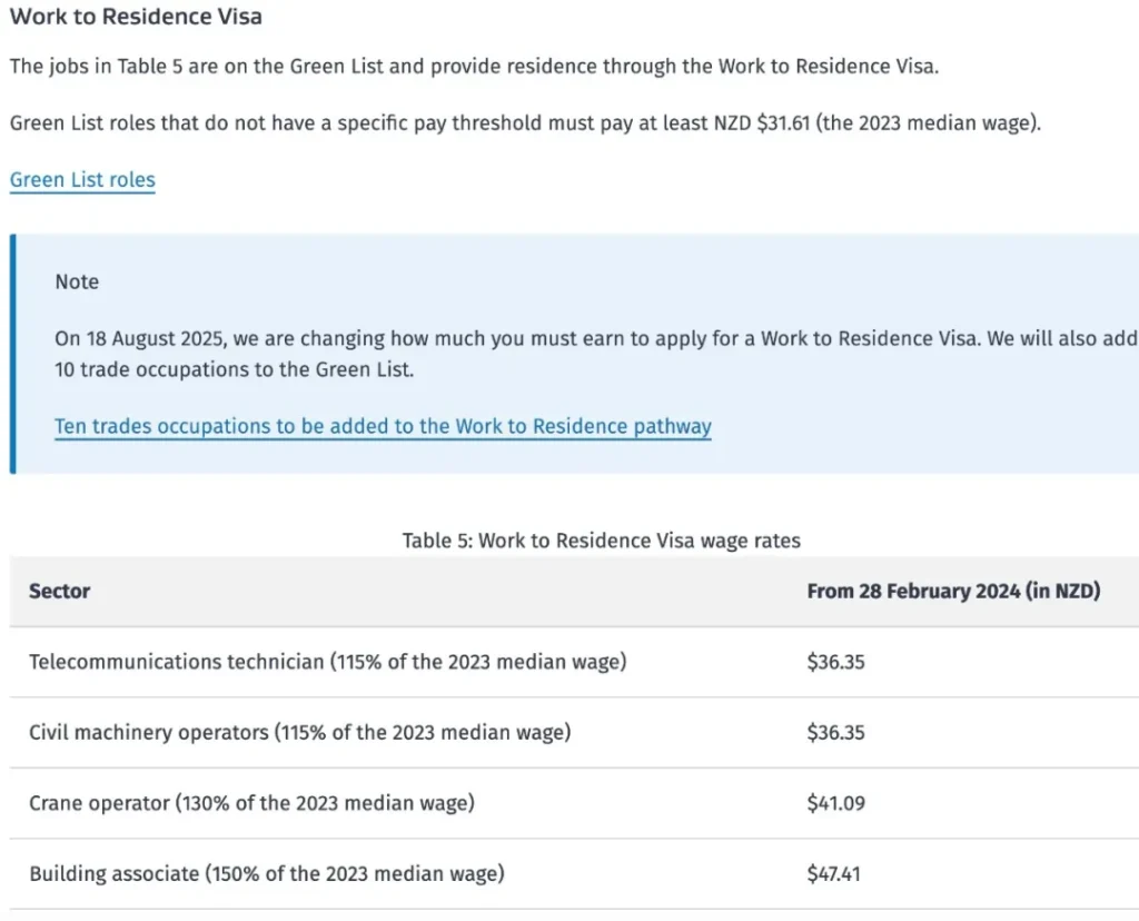 回答:2025年8月18日起,两倍中位数工资为每小时67.12新西兰元。达到这一工资水平的AEWV申请人可能免于劳动力市场测试和低技能门槛限制。这一政策调整为高薪申请人提供了更多的便利,同时也体现了新西兰对高技能人才的持续欢迎态度。